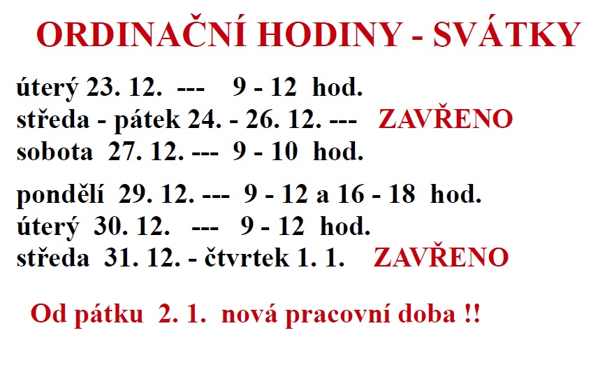 ORDINAČNÍ HODINY – do 31. 12. 2025