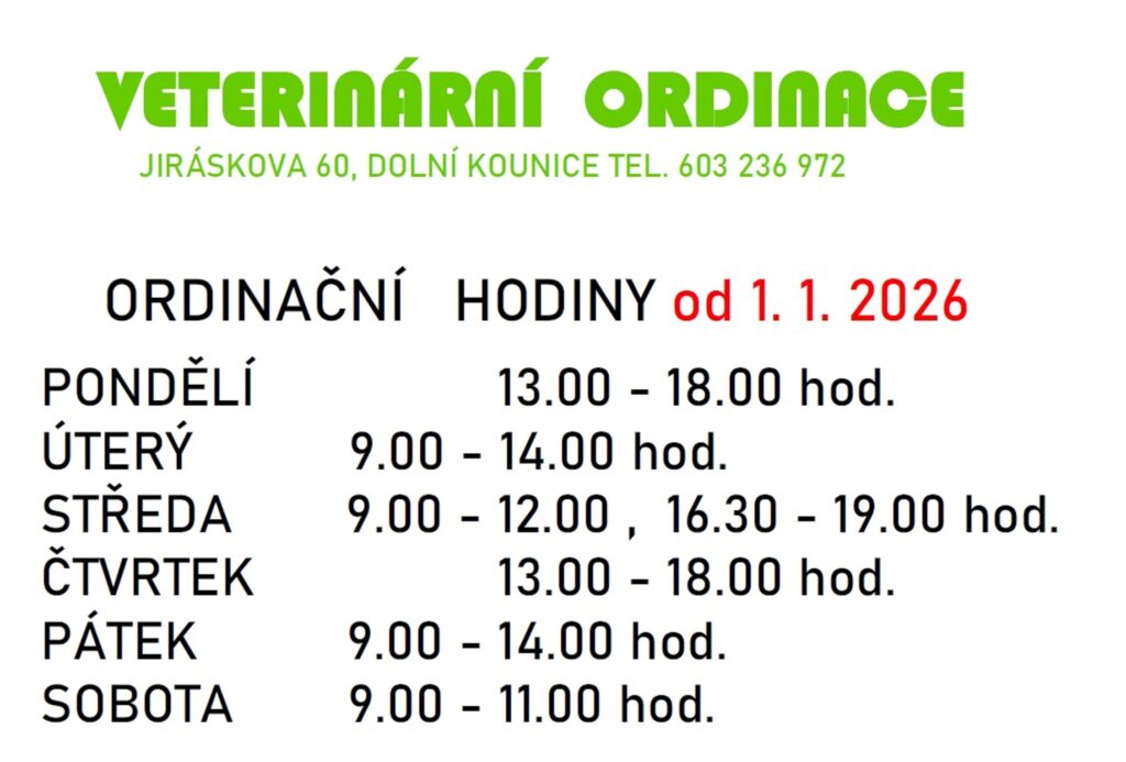 Od 1. 1. 2026 změna v ordinačních hodinách: